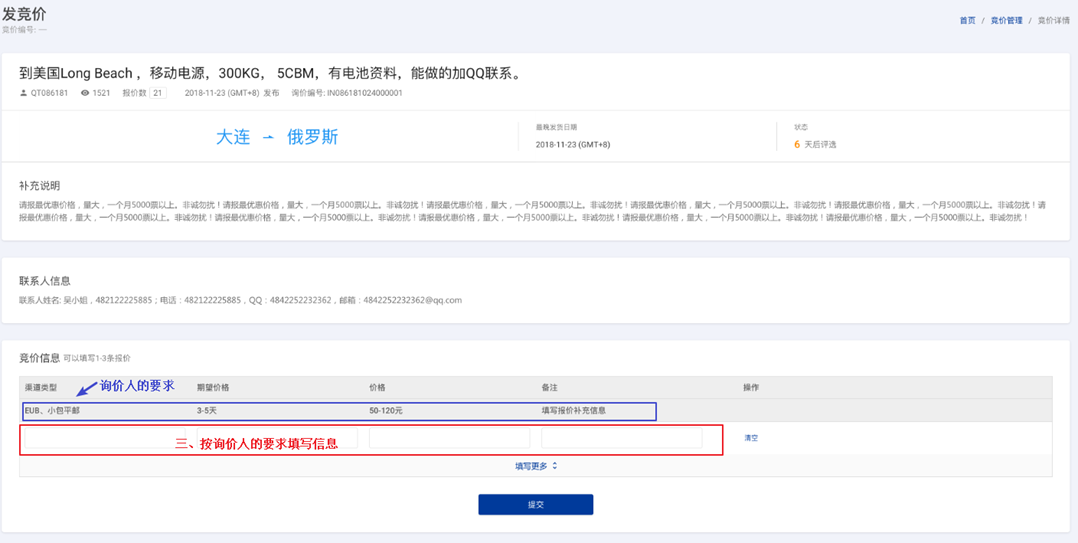 - 根据询价人的要求填写相应的竞价信息。